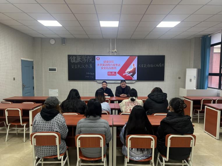 12月12日早上15:00,遂寧校區(qū)健康學(xué)院在5號(hào)教學(xué)樓413教室召開學(xué)生英語(yǔ)四六級(jí)考前安全與禮儀培訓(xùn)會(huì)議,會(huì)議由學(xué)院副院長(zhǎng)趙雙主持,院長(zhǎng)孫燕龍以及全體報(bào)考學(xué)生參會(huì)。