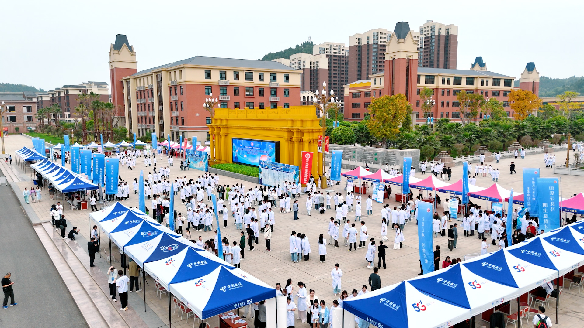 為深入貫徹黨中央、國(guó)務(wù)院“穩(wěn)就業(yè)”“保就業(yè)”的決策部署,積極響應(yīng)教育部“春季促就業(yè)攻堅(jiān)行動(dòng)”號(hào)召,牢牢把握春招關(guān)鍵期,為畢業(yè)生與用人單位搭建高效對(duì)接的優(yōu)質(zhì)平臺(tái),2025年4月16日,我校在遂寧校區(qū)校門廣場(chǎng)成功舉辦2025年春季大型校園招聘會(huì)。本次招聘會(huì)吸引了成都三六三醫(yī)院、四川省第五人民醫(yī)院、四川現(xiàn)代醫(yī)院等56家醫(yī)藥衛(wèi)生類企事業(yè)單位參與,共提供1398個(gè)就業(yè)崗位。大英縣人民政府分管領(lǐng)導(dǎo)、大英縣人力資源和社會(huì)保障局主要領(lǐng)導(dǎo)以及學(xué)校分管領(lǐng)導(dǎo)親臨現(xiàn)場(chǎng)指導(dǎo)工作,同時(shí)進(jìn)行了大學(xué)生就業(yè)創(chuàng)業(yè)服務(wù)站的簽約與授牌儀式。